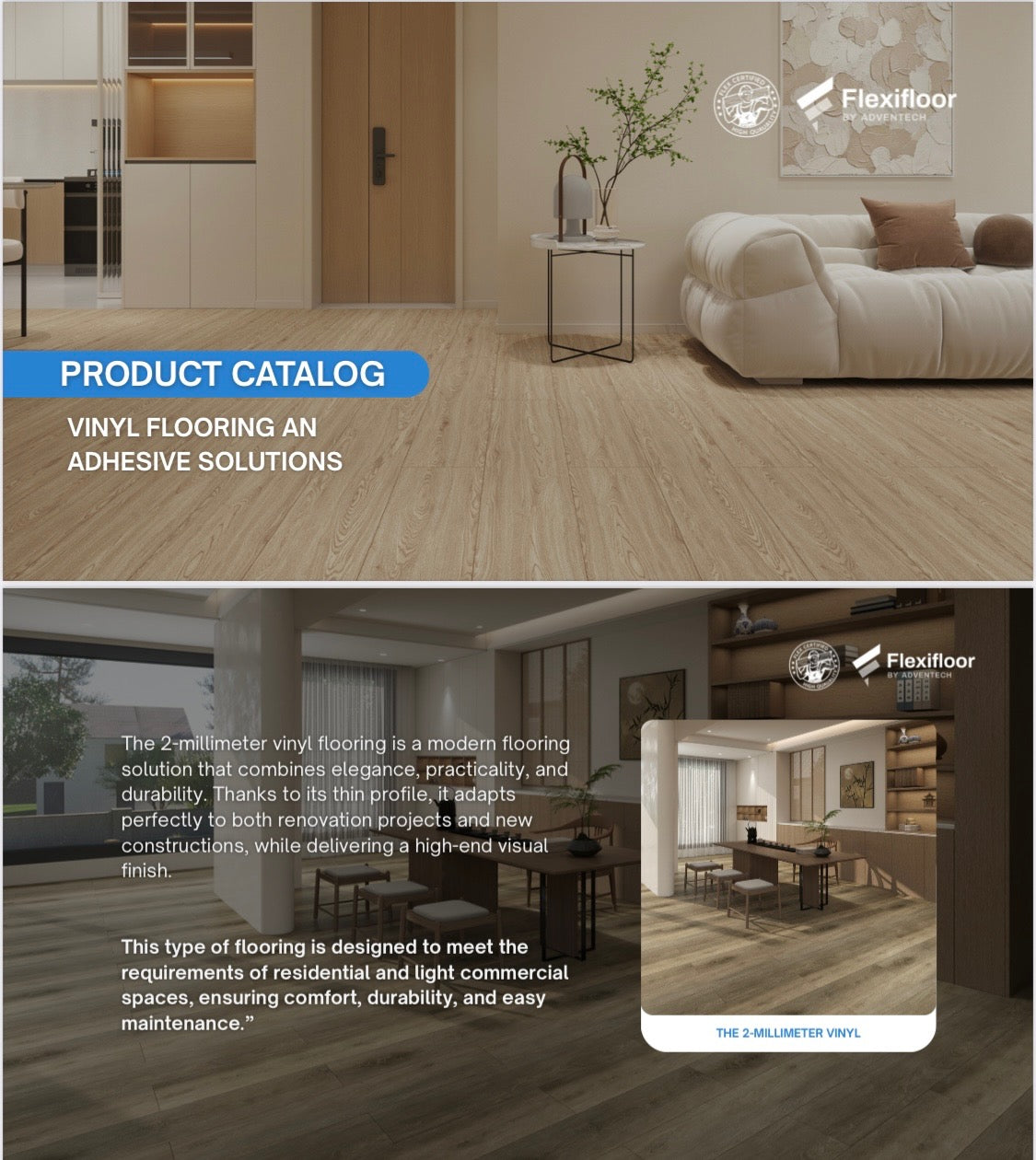 The 2-millimeter vinyl flooring is a modern flooring solution that combines elegance, practicality, and durability. Thanks to its thin profile, it adapts perfectly to both renovation projects and new constructions, while delivering a high-end visual finish. This type of flooring is designed to meet the requirements of residential and light commercial spaces, ensuring comfort, durability, and easy maintenance.