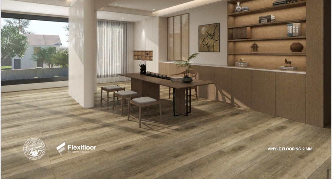 The 2-millimeter vinyl flooring is a modern flooring solution that combines elegance, practicality, and durability. Thanks to its thin profile, it adapts perfectly to both renovation projects and new constructions, while delivering a high-end visual finish. This type of flooring is designed to meet the requirements of residential and light commercial spaces, ensuring comfort, durability, and easy maintenance.